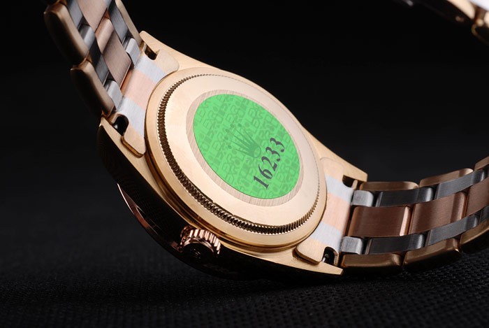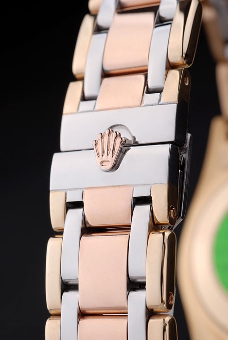 Tillbaka: 18k gult guld guldpläterade rostfritt stål push-in målet med grön Rolex logo stamp