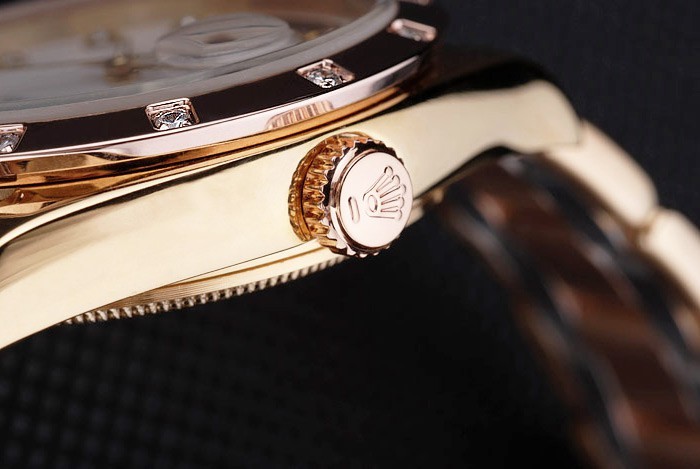 Crown: 18k steg-guldpläterade stål cutwork krona med Rolex logo