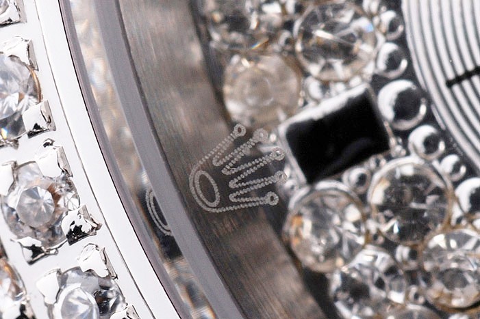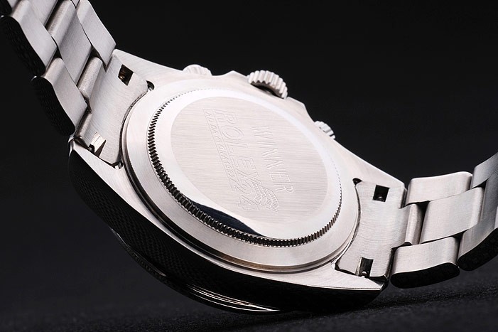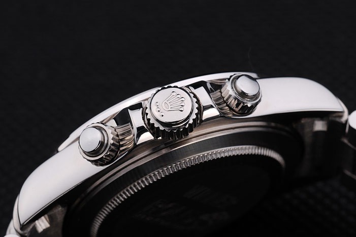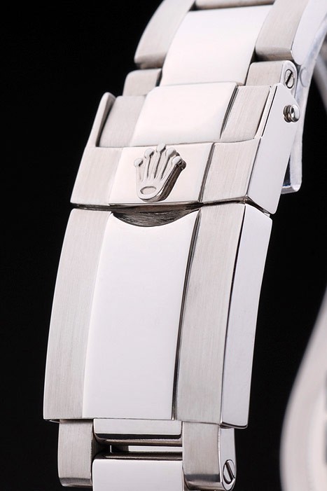Crown: Polerat rostfritt stål cutwork krona med Rolex logotyp och ytterligare två kronor på vardera sidan om it
