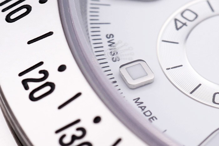 Bezel: polerat rostfritt stål bezel med enheter per timme indicator