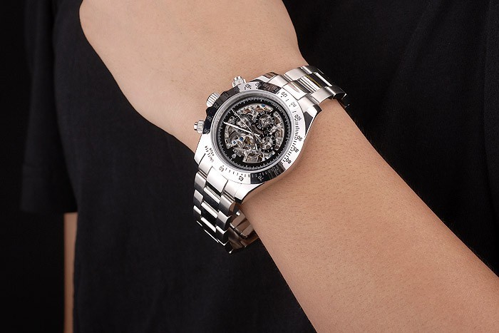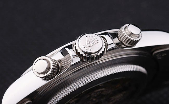 Crown: polerat rostfritt stål cutwork krona med Rolex logotyp och ytterligare två kronor på ömse sidor om it