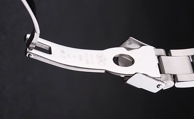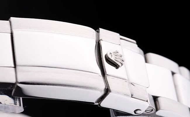 Bracelet: borstad och polerat rostfritt länk stål armband med Rolex gravyr utbyggnad lås visar Rolex logo