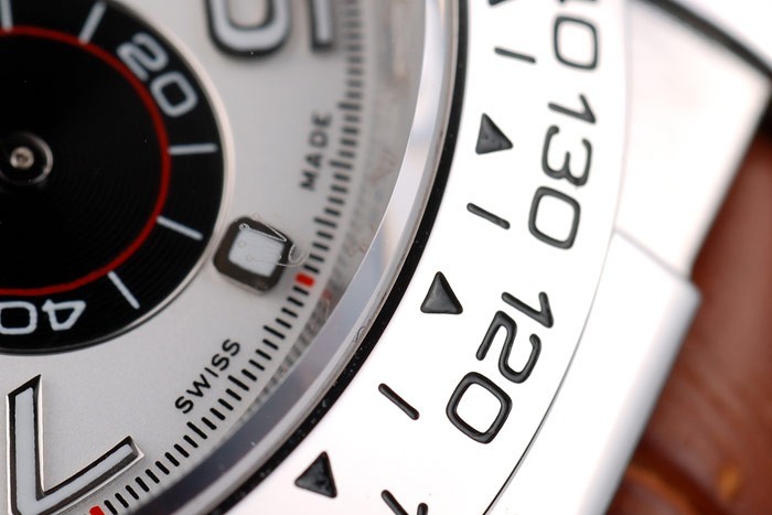 Bezel: polerat rostfritt stål bezel med tachymeter