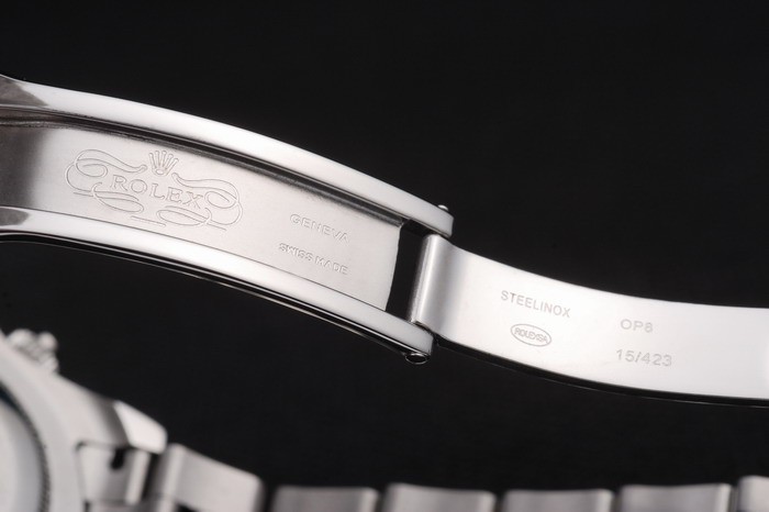 Back: Tryck in rostfritt stål tillbaka med grön Rolex klistermärke och markings