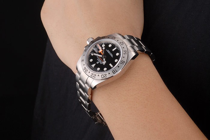Bezel: Borstat rostfritt stål cutwork bezel med svart arabisk siffra 24-timmars markers