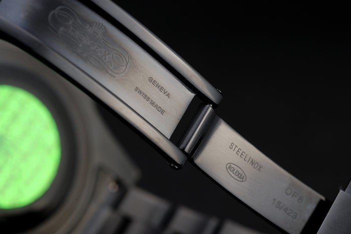 Tillbaka: Ion-plated snap-in tillbaka med grön Rolex äkthet sticker