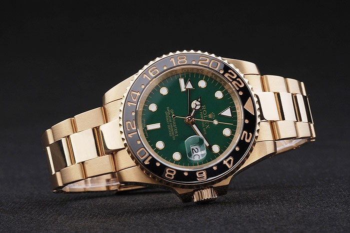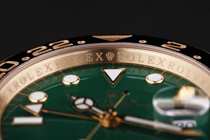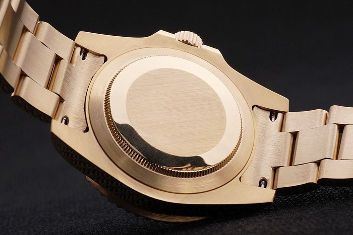 Bezel: guld-tonas rostfritt stål cutwork bezel med emaljerade topp innehåller självlysande sekunder och minuter