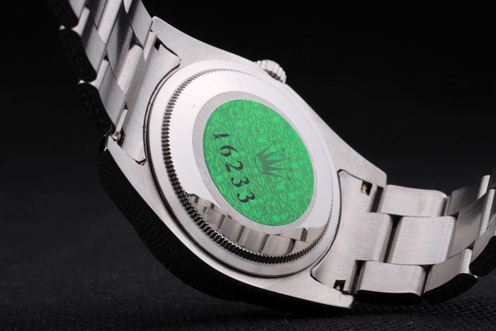 Tillbaka: Rostfritt stål push-in målet med grön Rolex gravyr stamp
