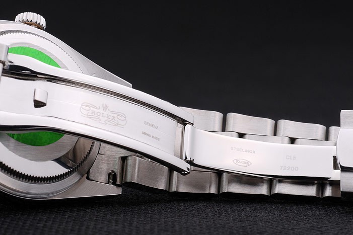 Tillbaka: Rostfritt stål push-in målet med grön Rolex gravyr stamp