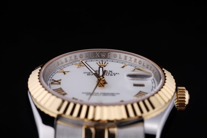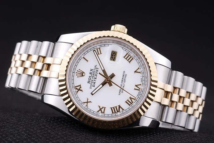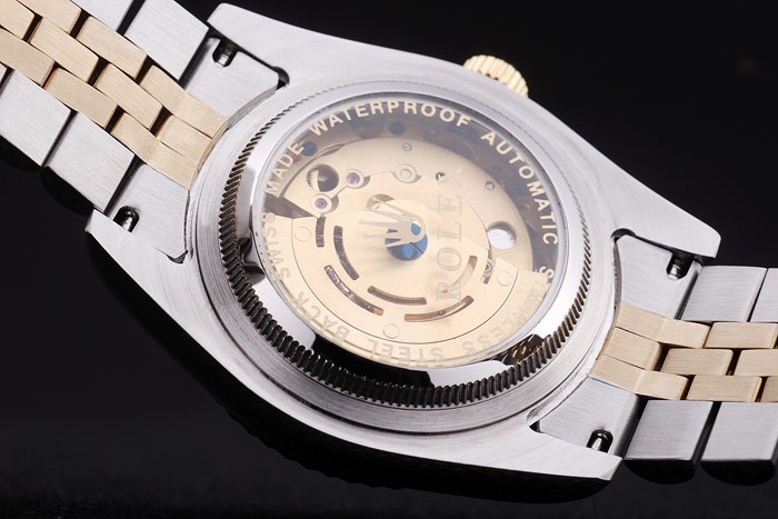 Bracelet: borstat rostfritt stål och gult guld länk armband med Rolex logotyp dold clasp
