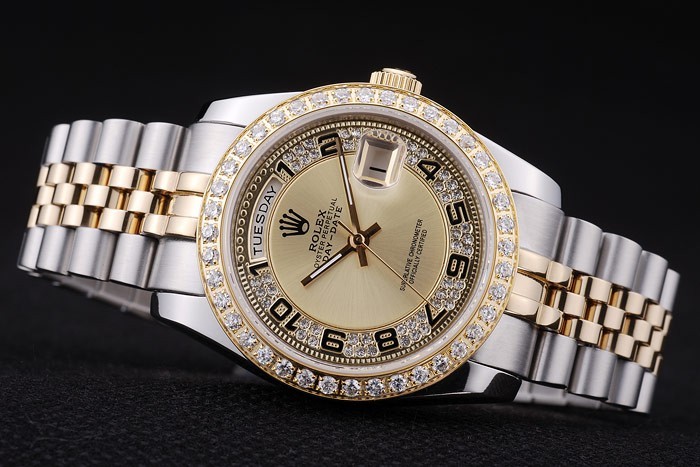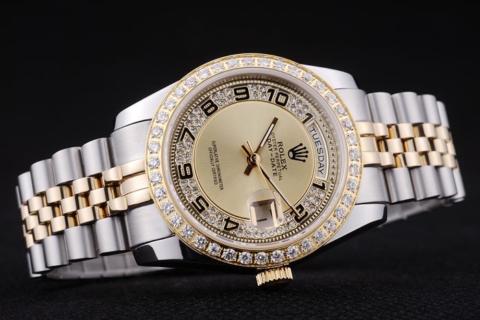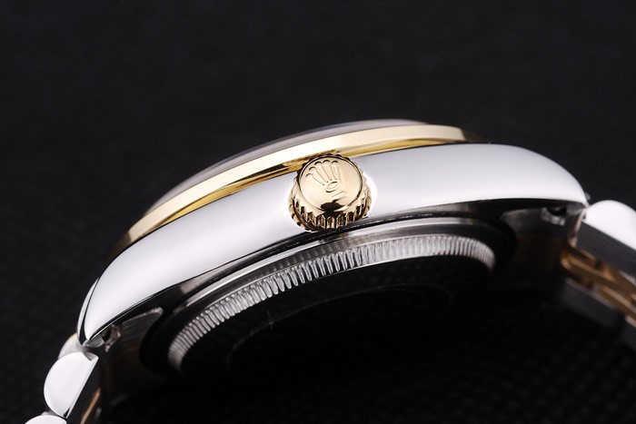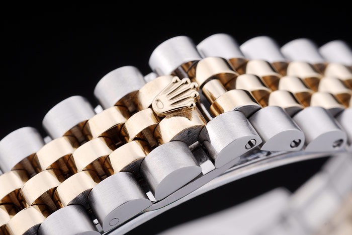 Bracelet: borstat rostfritt stål och gult guld länk armband med Rolex logotyp dold clasp