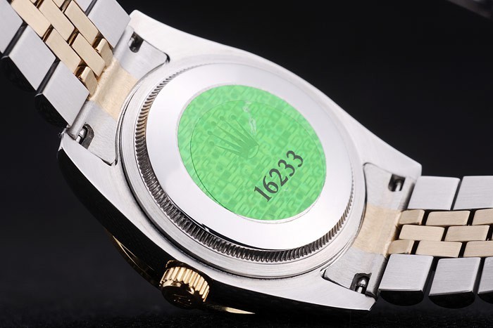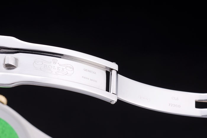 Tillbaka: Rostfritt stål snap-in tillbaka med grön Rolex äkthet sticker