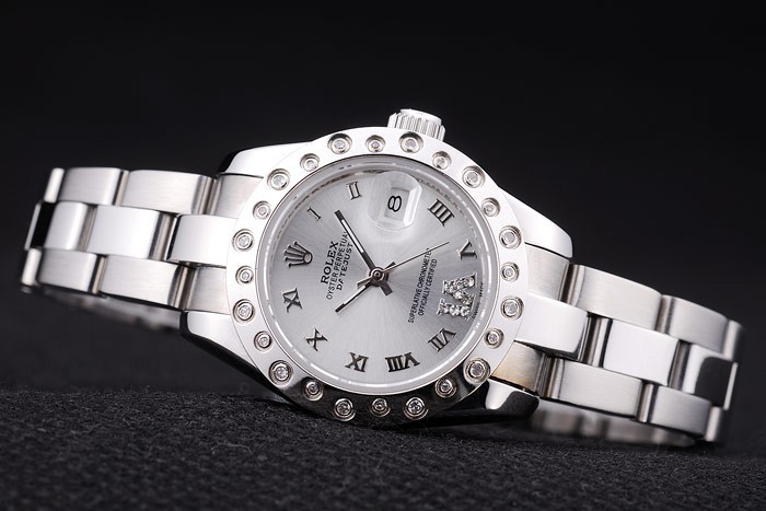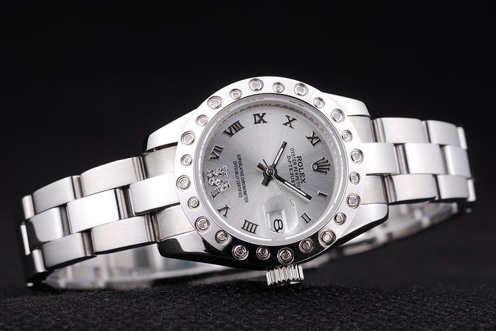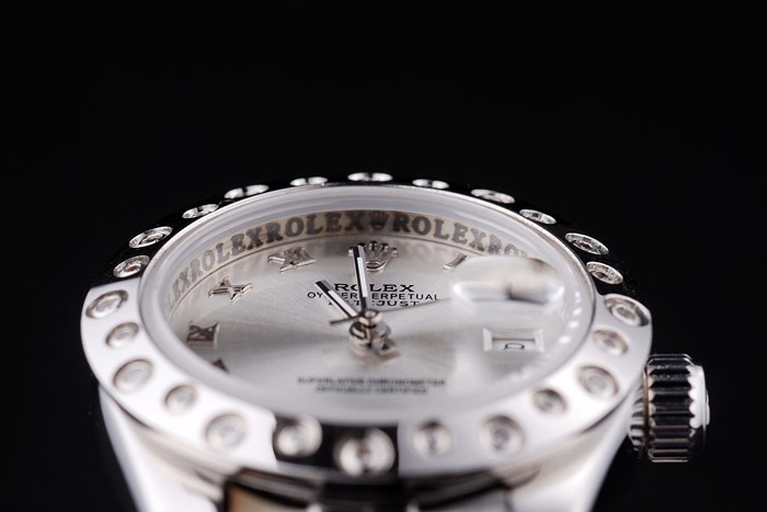 Crown: Polerat rostfritt stål cutwork krona med Rolex logo engraving