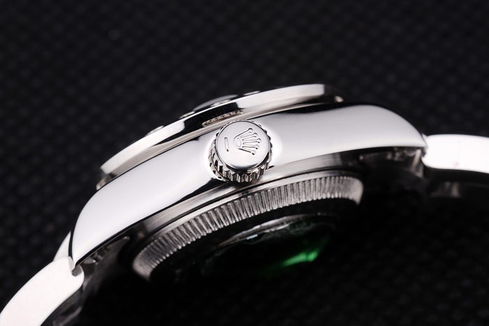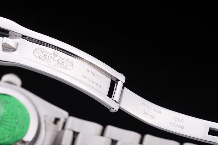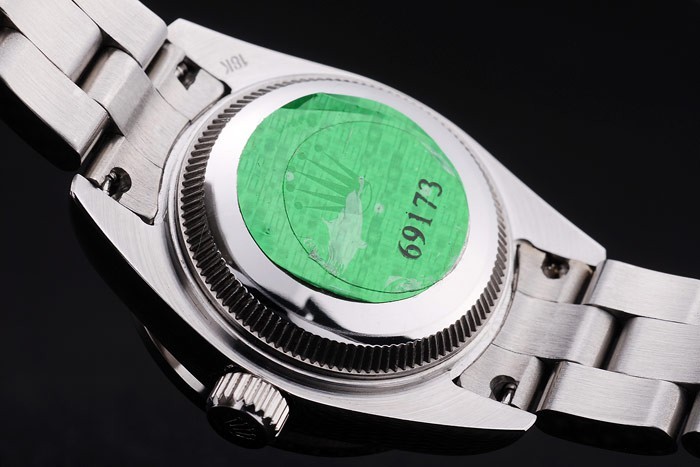 Tillbaka: Rostfritt stål snap-in tillbaka med grön Rolex äkthet sticker