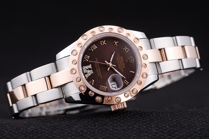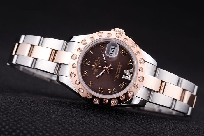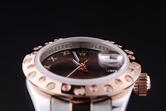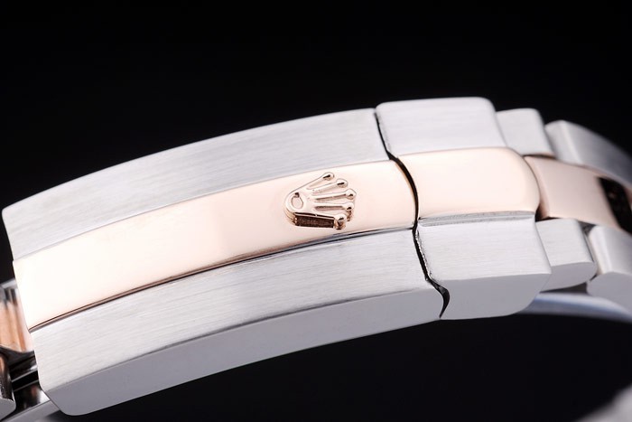 Bracelet: borstat rostfritt stål och rose-guld länk armband med Rolex logo driftsättning clasp