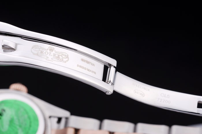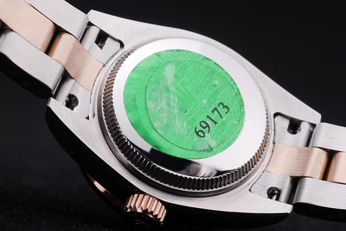 Tillbaka: Rostfritt stål snap-in tillbaka med grön Rolex äkthet sticker