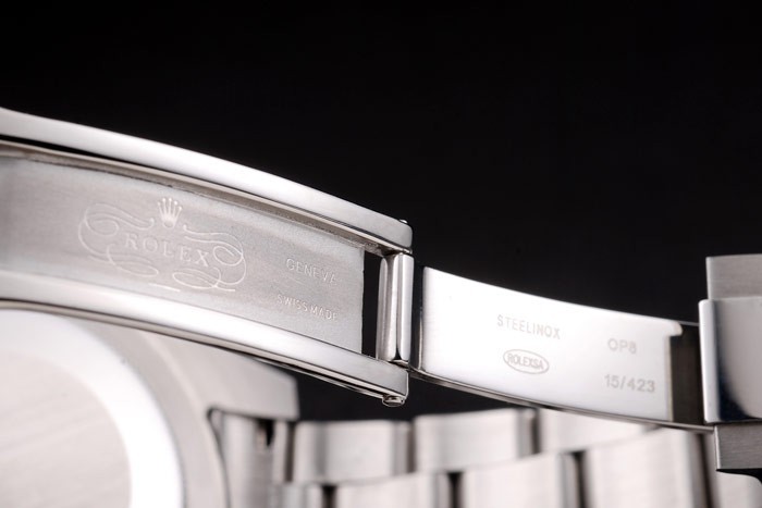 Bracelet: Polerad och borstat rostfritt stål länk armband med Rolex logotyp ristade driftsättning clasp