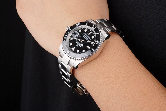 Bezel: Svart emalj ram med index och arabisk siffra sekunder marker