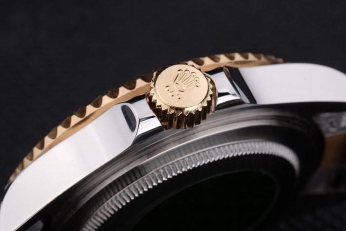Crown: 18k gult guld stål cutwork krona med Rolex logo