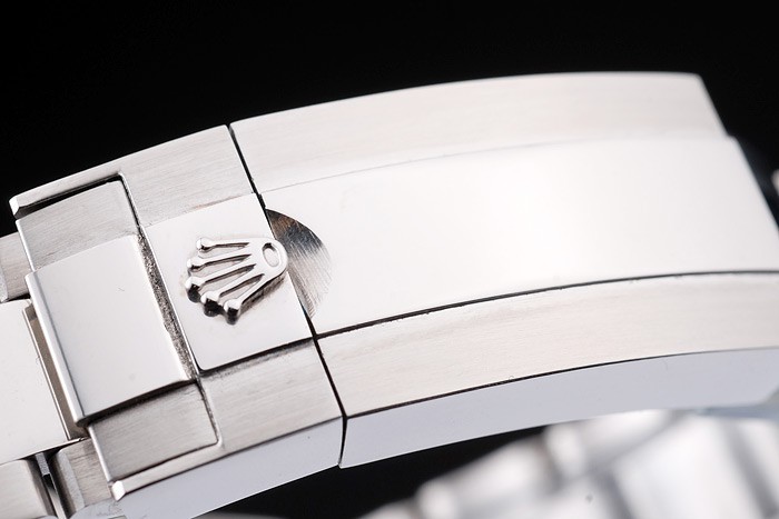 Bracelet: borstat rostfritt stål länk armband med Rolex gravyr vika i lås visar Rolex logo