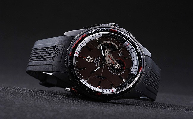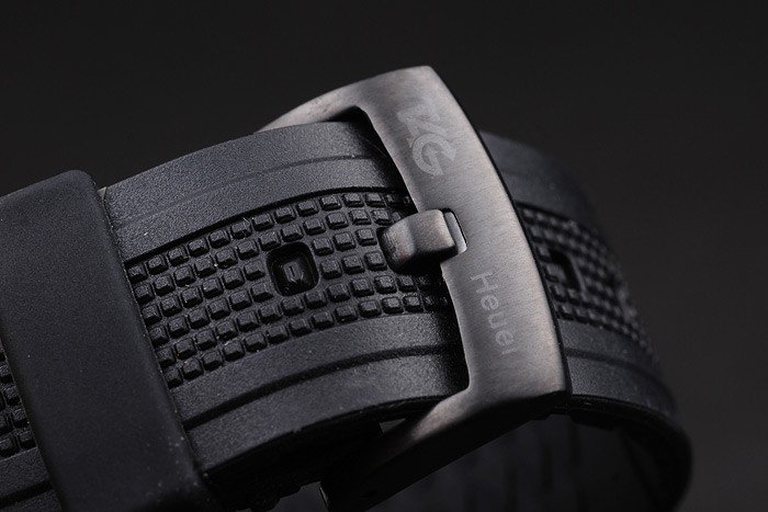 Bracelet rostfritt stål: texturerad svart gummiband med värme präglad och graverade krok stämpel Tag Heuer clasp
