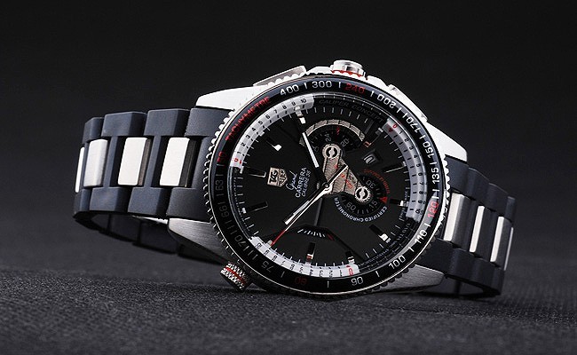 Bezel: Polerat cutwork rostfritt stål bezel med glänsande svart tachymeter
