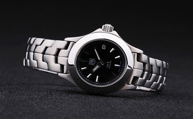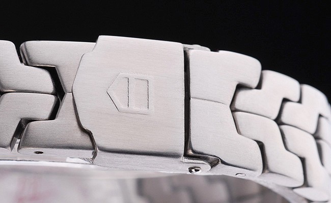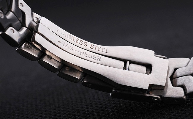 Bracelet: borstat rostfritt stål länk armband med Tag Heuer graverad fold-in clasp