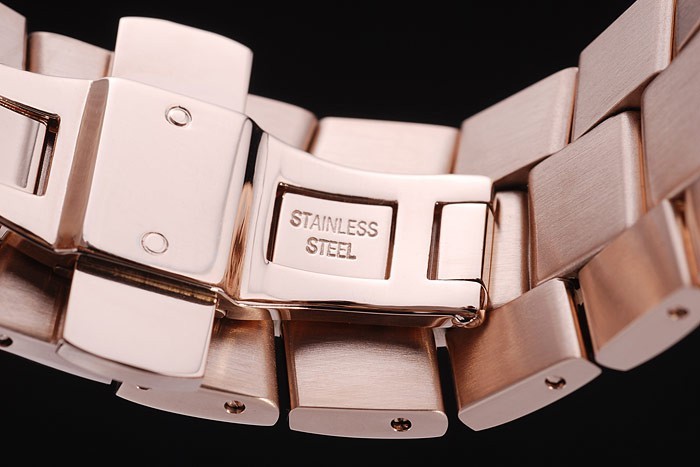 Bracelet rostfritt stål: 18k steg guldpläterade rostfritt stål länk armband med tryckknapp dolt clasp