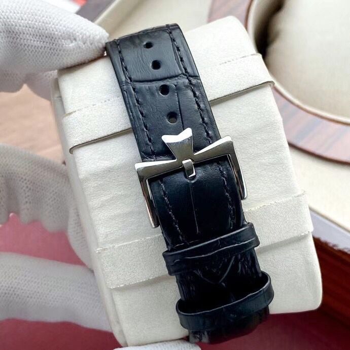 Bracelet: Heat präglade Vacheron Constantin och logotyp svart krokodil läderrem med polerat rostfritt stål logo krok -buckle clasp